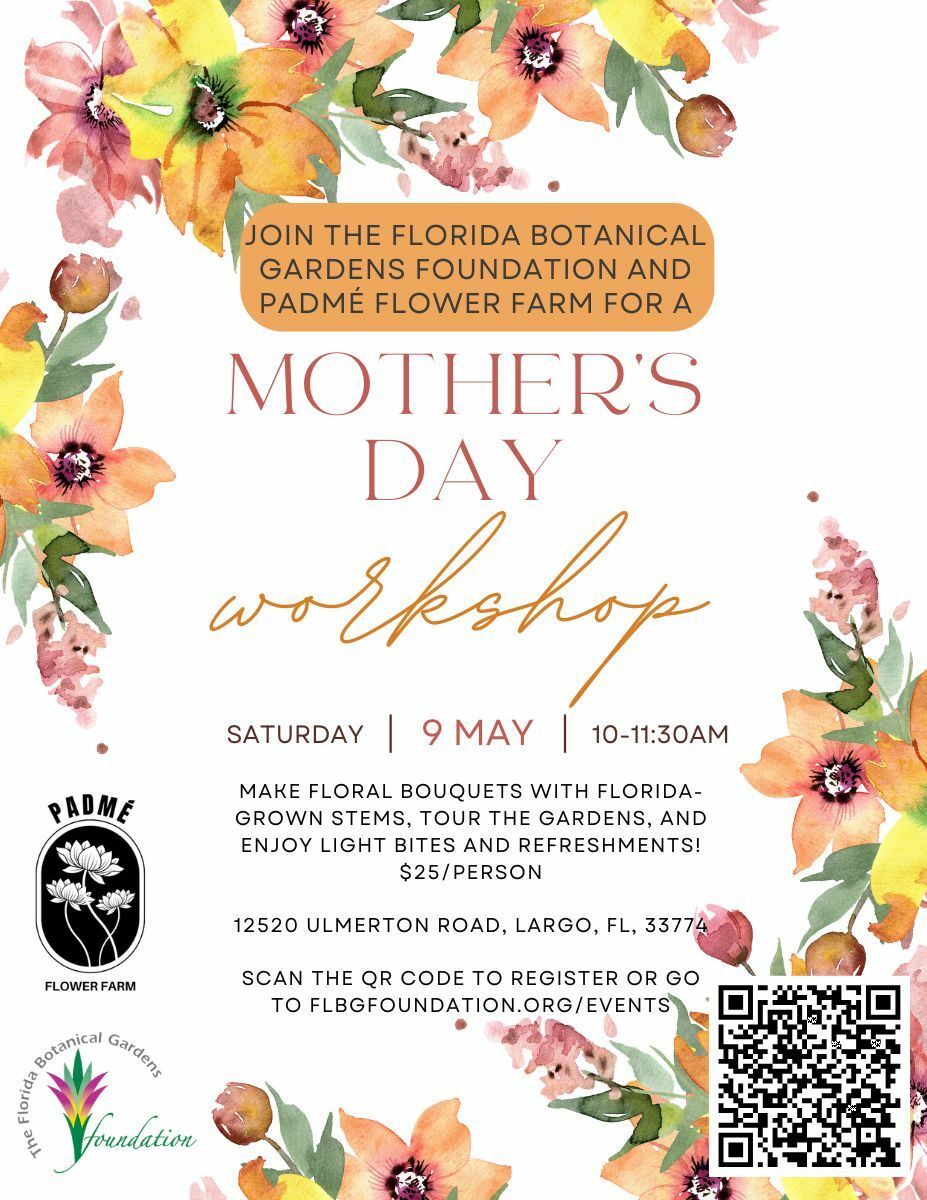 This special event will feature a garden tour of what's in bloom for spring, and an opportunity to arrange a beautiful Mother's Day bouquet from local florist, Padme Flower Farms. Plus a special Mother's Day photo area in the garden and light refreshments. Contact Mia McCormick with questions at flbgexecdirector@gmail.com